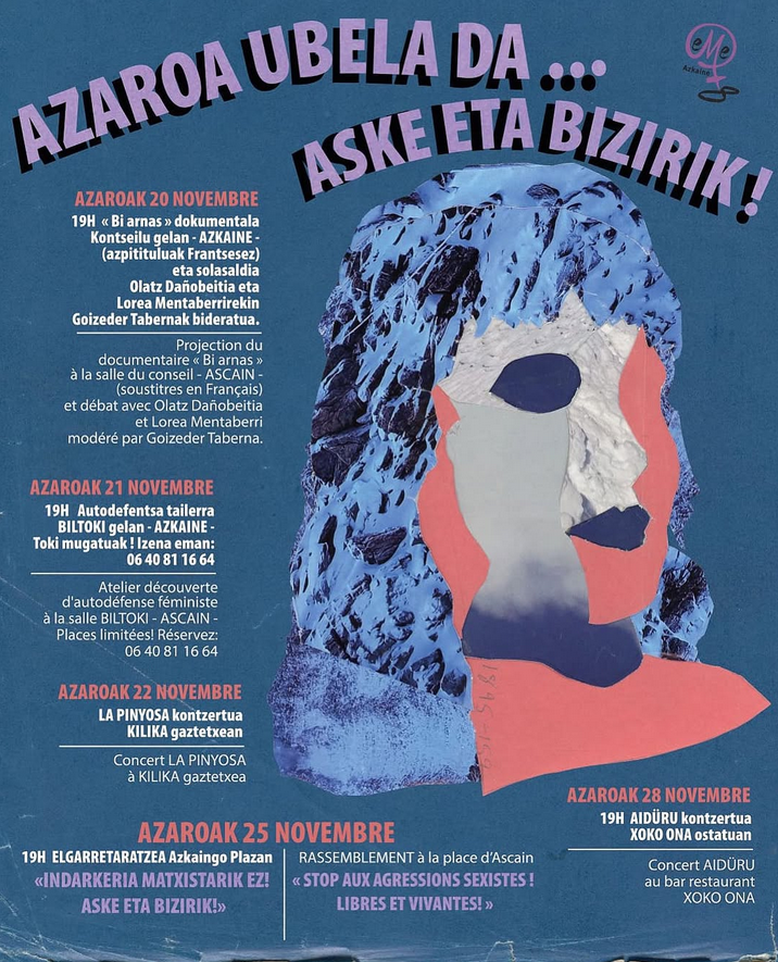 Azkaingo Eme8 talde feministak, Azkainen ekitaldi desberdinak proposatzen ditu ondoko egunetan. (Ikus afixa)
